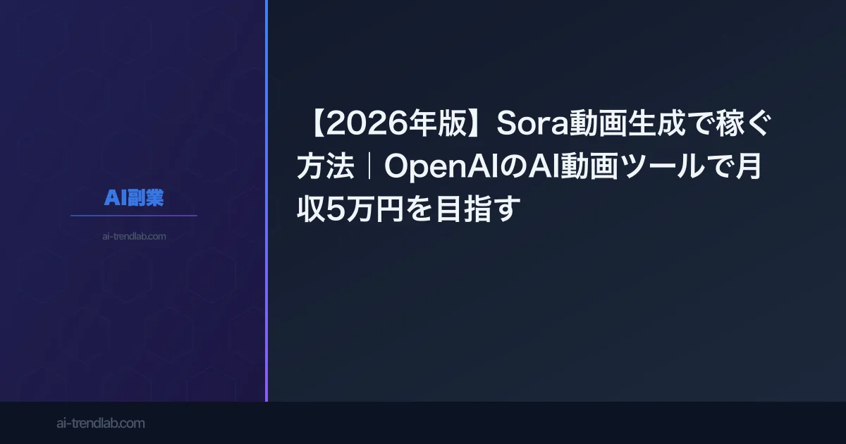 【2026年版】Sora動画生成で稼ぐ方法|OpenAIのAI動画ツールで月収5万円を目指す